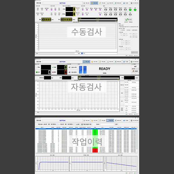 설명 본 검사기는 전기 자동차의 PDU(전력 분배 유닛)의 내부 부품을 보호하는 Cooling Block 제품의 Air Leak를 검사하는 설비이다. 탈착 및 교체 방식의 프레스∙지그 Set을 적용하여 Cooling Block의 어셈블리 검사 및 개별 구성 검사가 모두 가능하며, 측정 데이터를 Log Data와 연계해 보관 및 그래프로 로드함으로서 공정 능력 추이 파악이 가능한 자동차 부품 검사 설비이다.