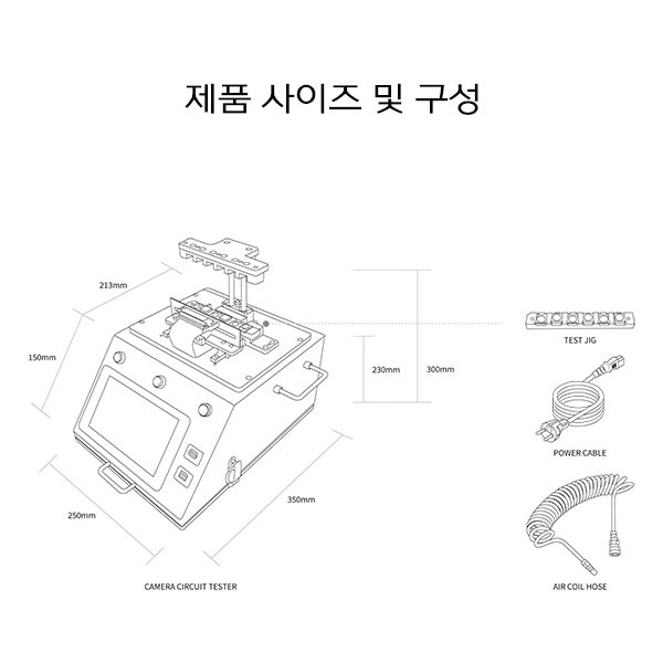 설명 이 제품은 (주)엠씨넥스에서 생산하는 휴대폰 카메라 렌즈 조절 모듈제품의 ACT에 대한 회로 검사, 에이징 검사, 오픈쇼트 검사를 하기 위한 기기이다.