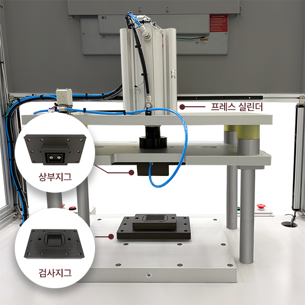 설명 본 장비는 ㈜KEM TECH에서 생산되는 EV 배터리셀 CAP ASSY 제품의 Vent 및 Terminal 부를 헬륨 누출 감지기로 누설 여부를 검사한다.