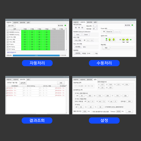 설명 이 제품은 (주)엠씨넥스에서 생산하는 휴대폰 카메라 렌즈 조절 모듈제품의 ACT에 대한 회로 검사, 에이징 검사, 오픈쇼트 검사를 하기 위한 기기이다.
