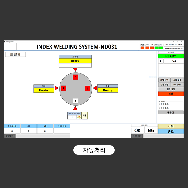 설명 본 장비는 ㈜하이소닉에서 생산되는 EV BATTERY CELL CAP PLATE의 벤트 용접 작업 및 용접 상태의 품질을 비전 검사하는 설비이다.